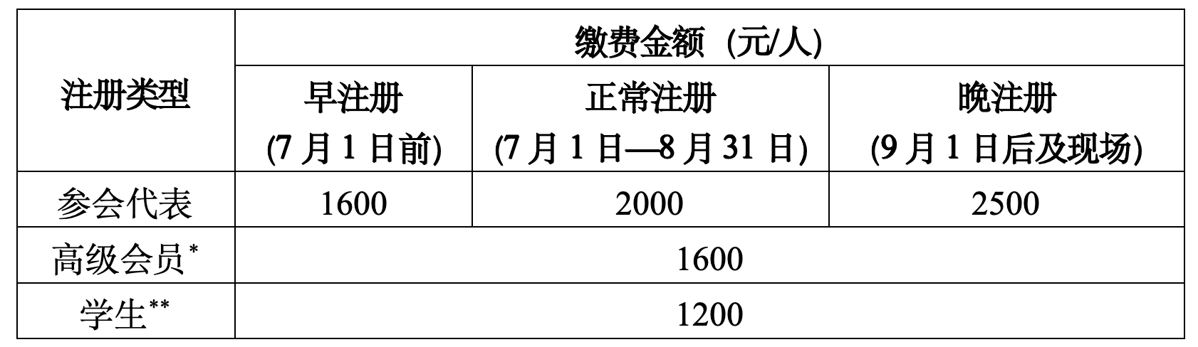 1. 会议注册费